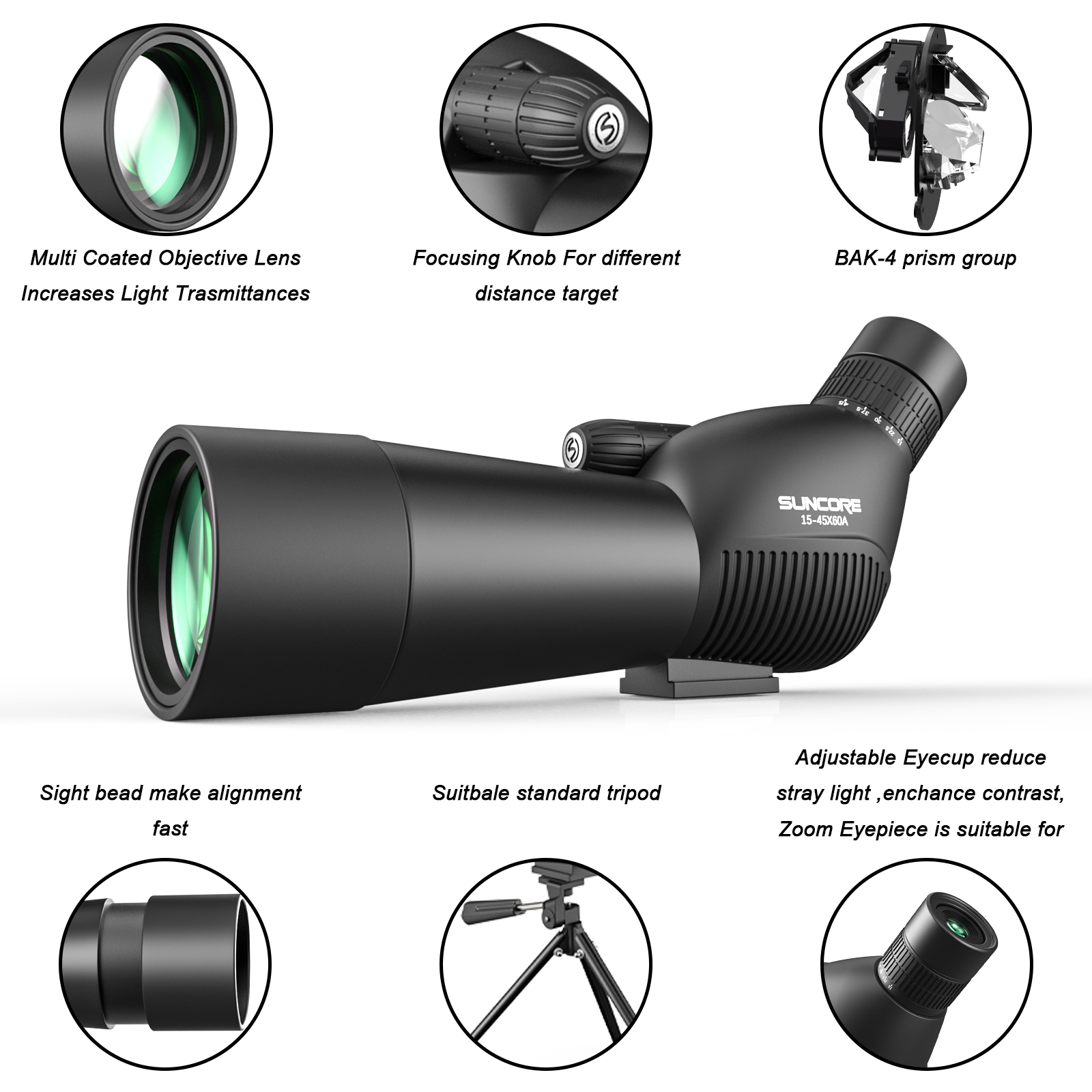 SUNCORE舜光閱目15-45x60望遠(yuǎn)鏡戶外觀鳥鏡夜視高清高倍觀靶
